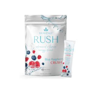 Bravenly Rush contiene cafeína natural y otras fuentes de energía limpia que proporcionan una energía suave y equilibrada, que aumenta de forma natural y disminuye gradualmente en perfecta armonía.